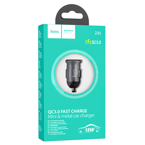 АЗУ 12-24V HOCO Z43, 1xUSB 3.0, 18W, Black, Box