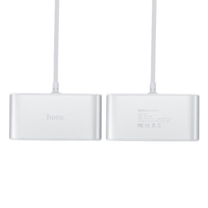 АЗУ-розгалужувач Hoco Z13. In: 12-24V. 3 гнізда прикурювача. 2 порти USB (2.1A). LED дисплей. Grey. Box