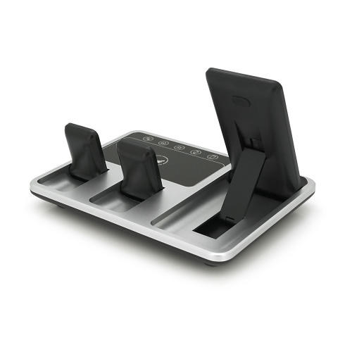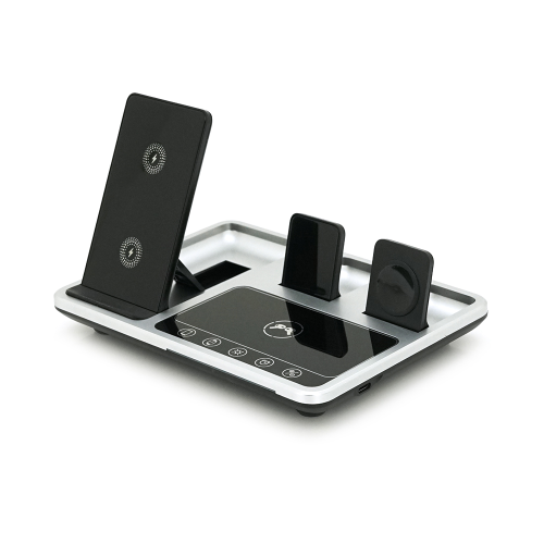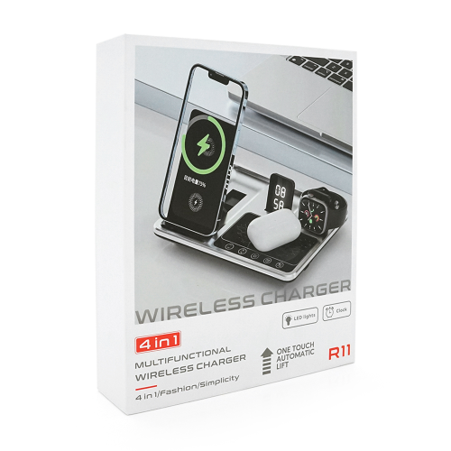 Бездротова зарядка+годинник R-11 4в1, під телефон+годинник+навушники, Black / Silver, Box