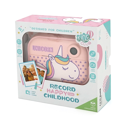 Дитячий фотоапарат YT008 з функцією миттєвого друку, підтримка microSD card, Рожевий Єдиноріг, Box