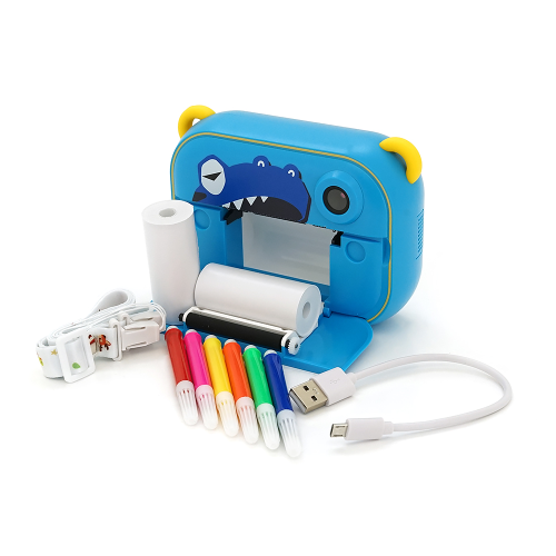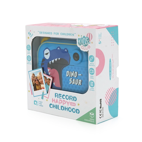 Дитячий фотоапарат YT008 з функцією миттєвого друку підтримка microSD card, Синій Динозавр, Box