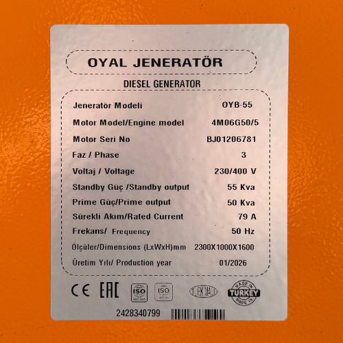 Дизельний генератор OYAL OYB-55 BAUDOUIN 4M06G55-5 55KVA / 48KW, Альтернатор OYL224D, витрата 75% навантаження - 8,8 літрів / год, 230 / 400 В, 50 Гц (AVR+ATS), 2400x1000x1500 мм, 1050 кг, 170 л