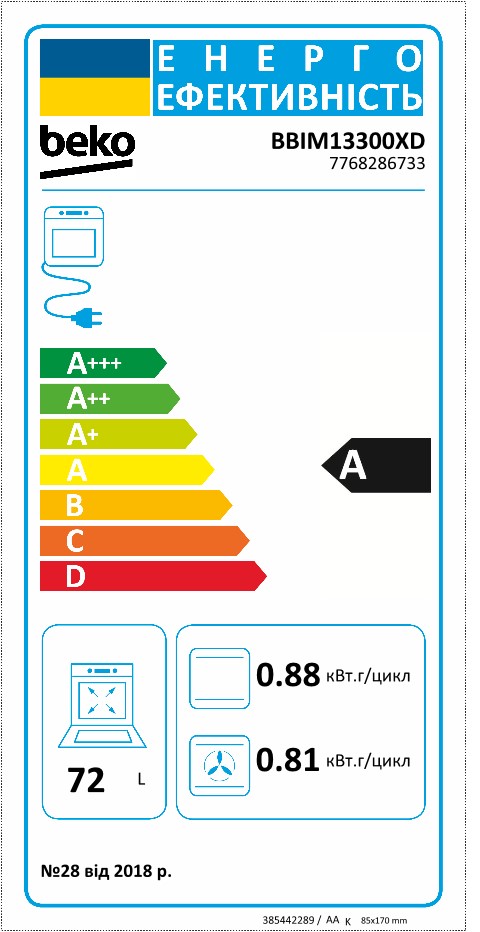 Духова шафа Beko електрична, 72л, A, дисплей, конвекція, чорний