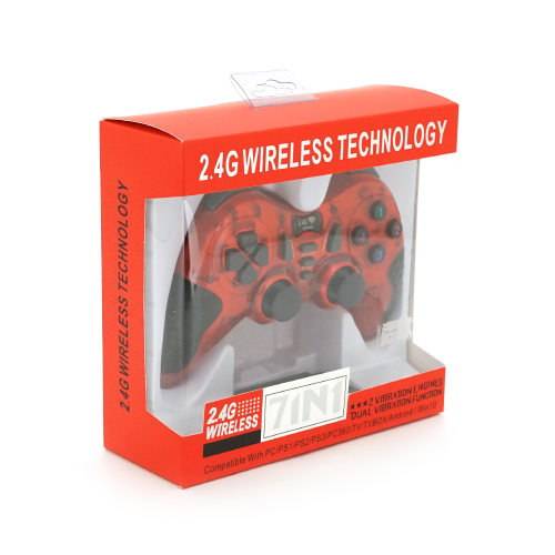 Геймпад бездротовий 7 в 1 для PC / PS1 / PS2 / PS3 / PC360 / TV / TV BOX / Android / Win10, живлення від 2*ААА(немає в помплекті), Red, Blister