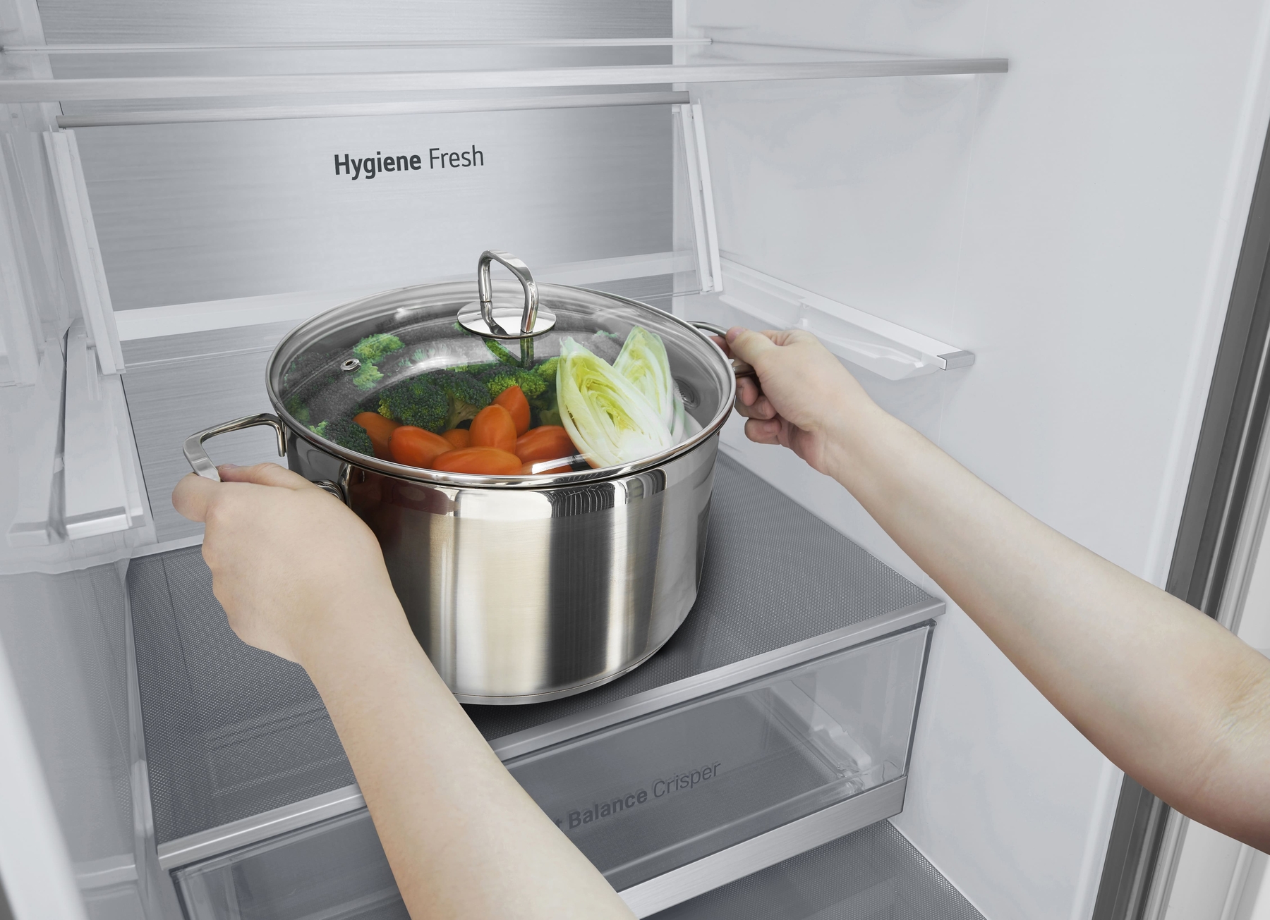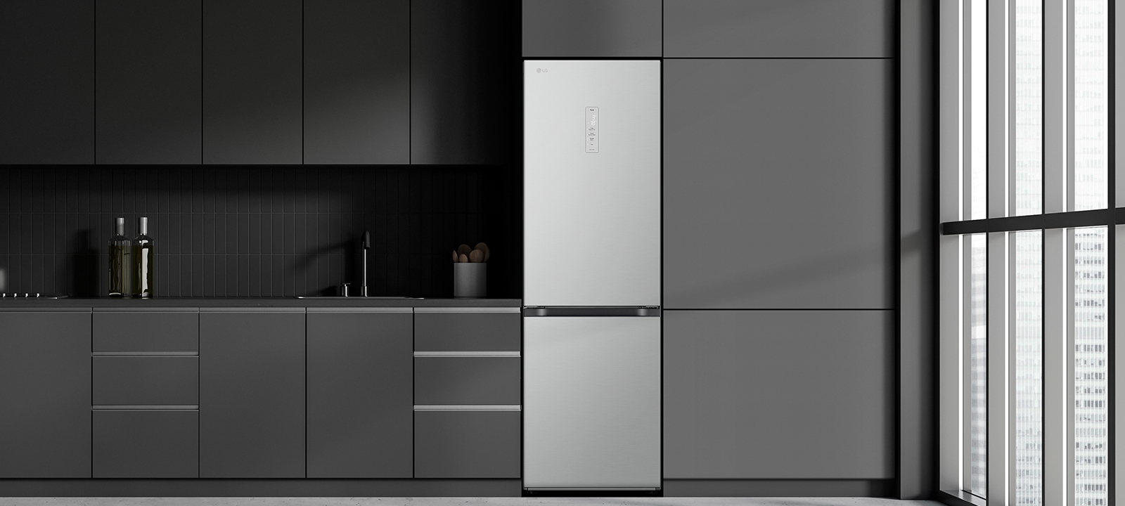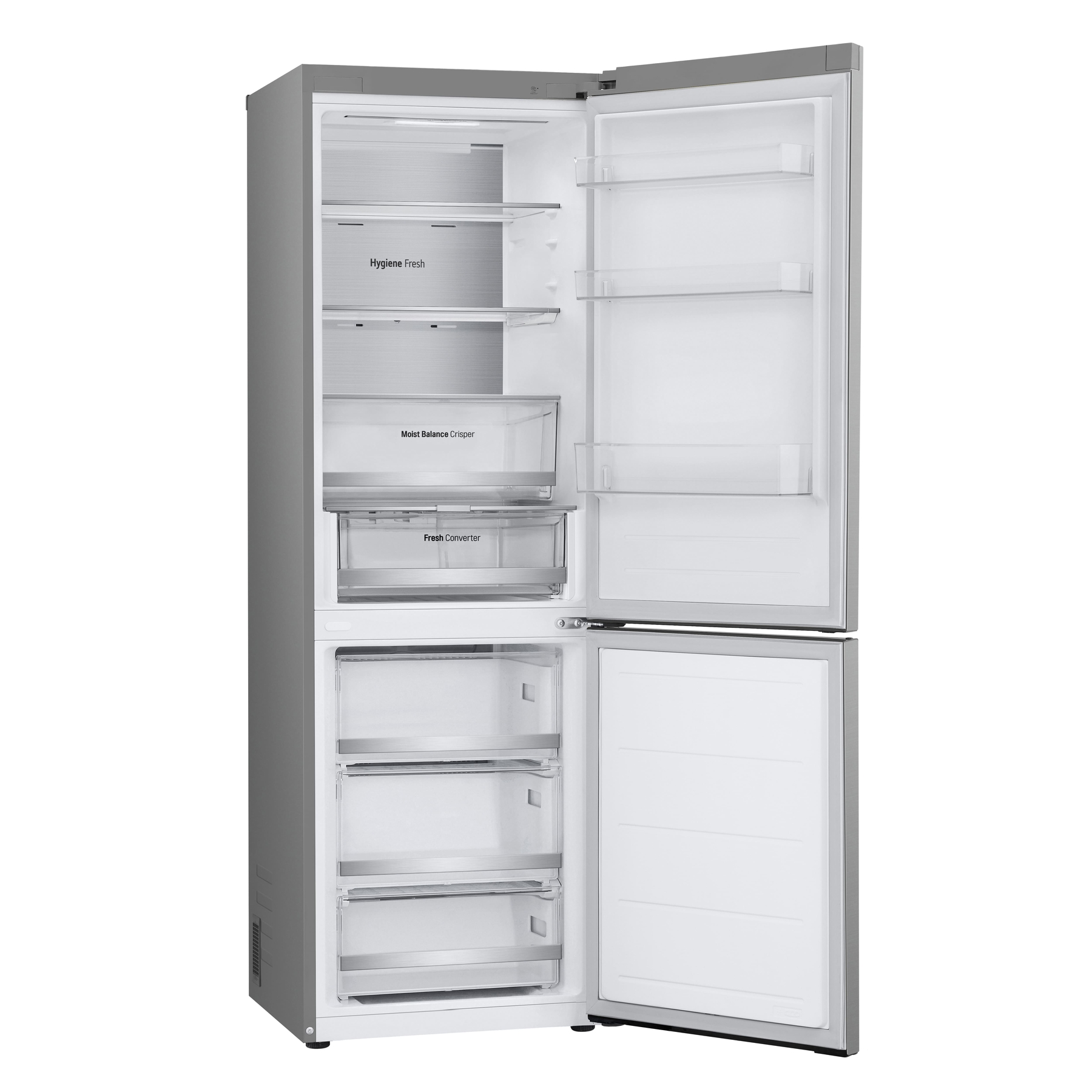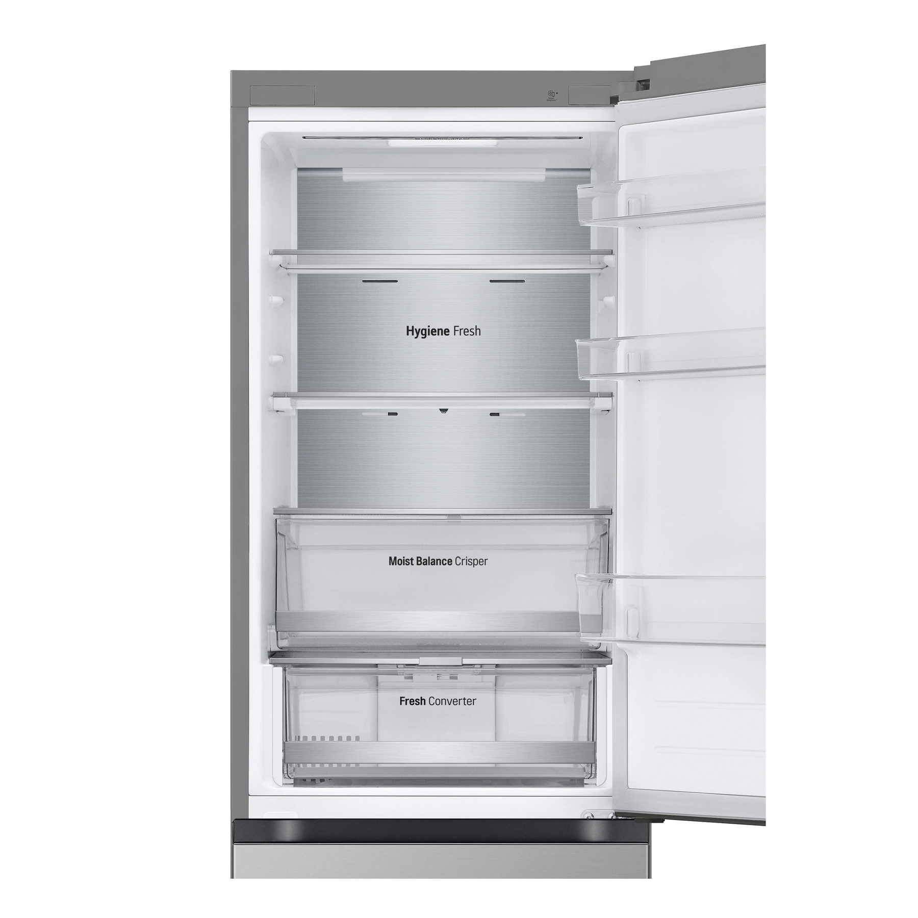 Холодильник LG з нижн. мороз., 186x60х68, холод.відд.-234л, мороз.відд.-110л, 2дв., А++, NF, інв., диспл зовн., Fresh Сonverter, Metal Fresh, сріблястий