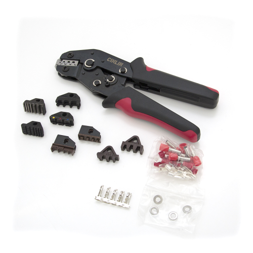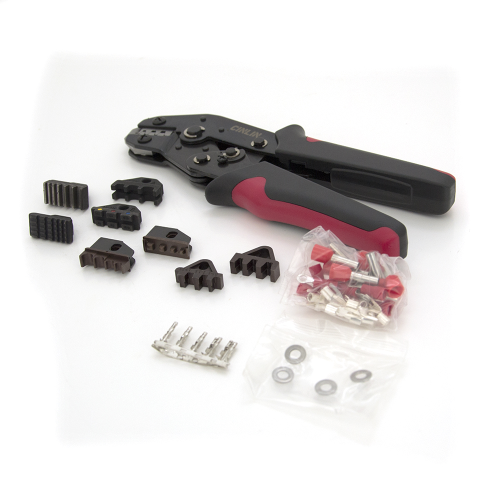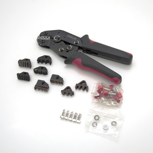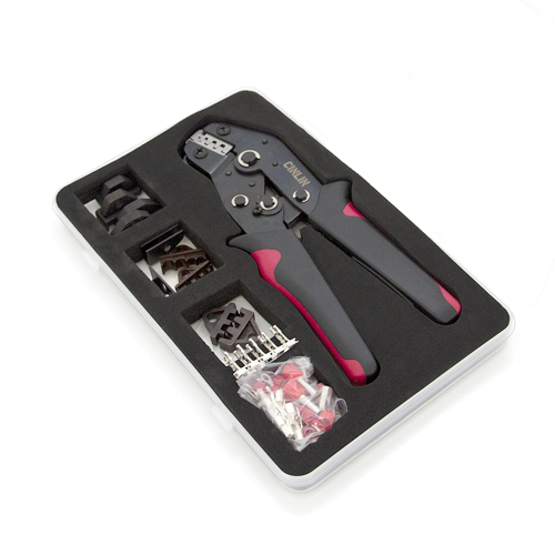Інструмент обжимний SN-2549 для обжимки клем + насадки 06 -0.5-6mm2, 02С -0.5-2.5mm2, 06WF -0.25-16mm2, 48B -0.5-2.5mm2, Black-red