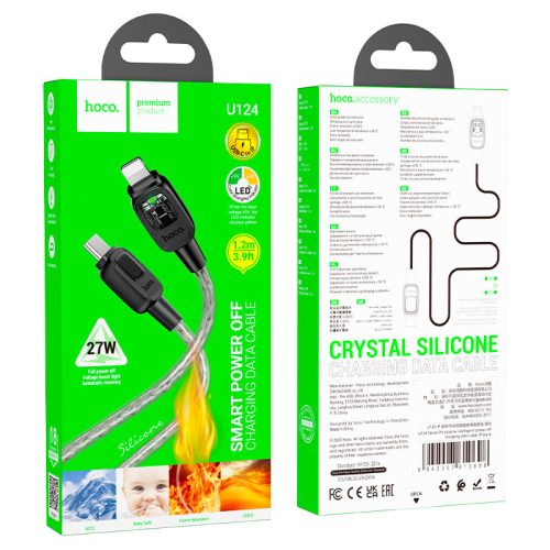 Кабель Hoco U124, Type-C-Lighting, 27W, довжина 1.2м, Black / Gray, BOX