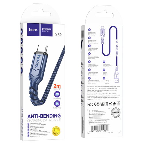 Кабель Hoco X59, Type-C-USB, 3A, Black, довжина 2м, BOX
