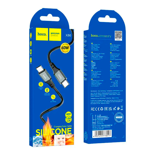 Кабель Hoco X86 silicone, C-Type C, 60W, Black, довжина 1м, BOX