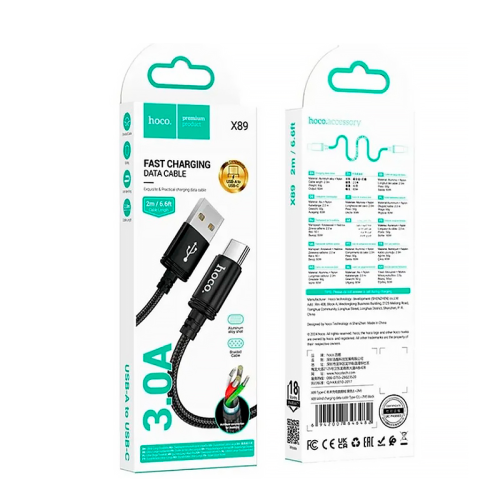 Кабель Hoco X89, Type-C-USB, 3A, Black, довжина 2м, BOX