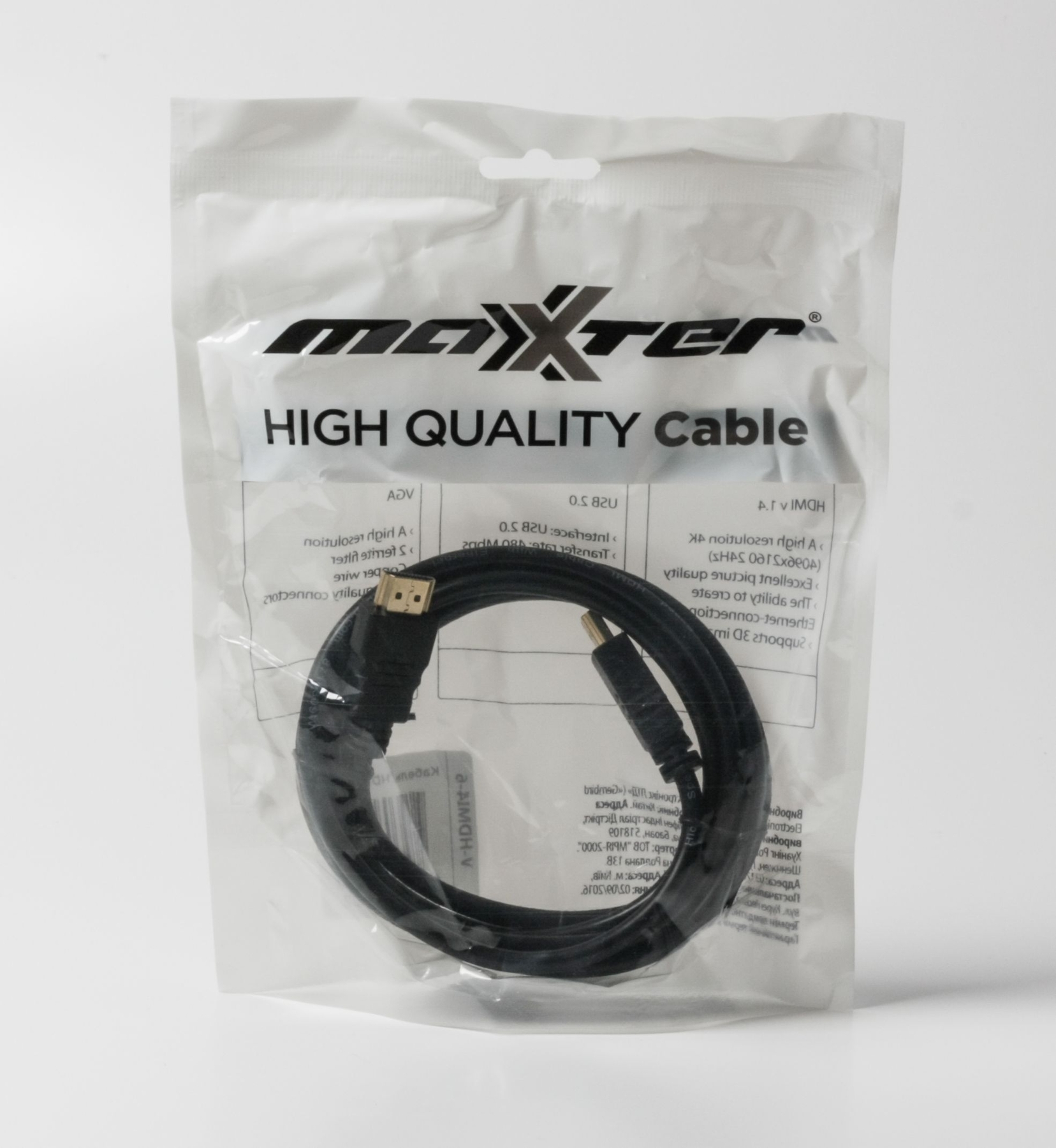 Кабель Maxxter HDMI - HDMI V 1.4 (M/M), 1.8 м, черный (V-HDMI4-6) пакет