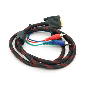 Кабель VGA (тато)-3RCA (тато) 1.5m, Black / Red, обплетення, пакет