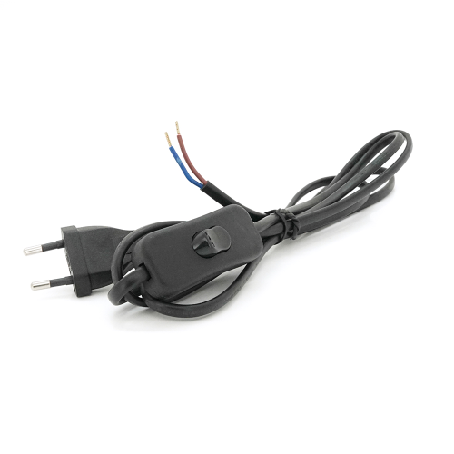 Кабель живлення Schuko з перемикачем, довжина 1.8м, перетин 0.5-0.75mm, під паяння, Black, OEM