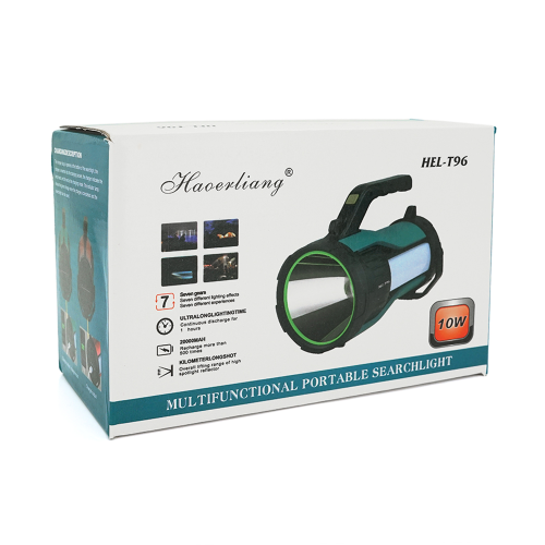 Ліхтар пошуковий Haoerliang HEL-T96, 1LED+COB T6, 10W, 3+2+2 режими, 20000mah, Black / Gold, IP40, USB кабель+Solar, 200х95х140мм, BOX