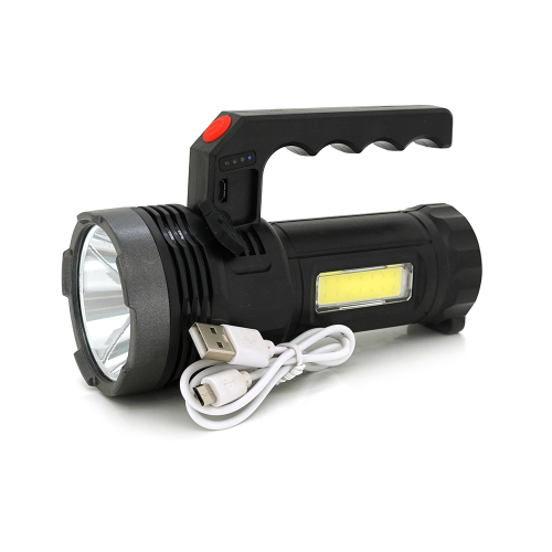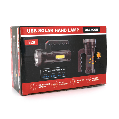 Ліхтар пошуковий USHL-828, 1LED T6+COB, 3W, 3+1 режими, 1200mah, Black, IP40, USB кабель+Solar, 150х60х90мм, BOX