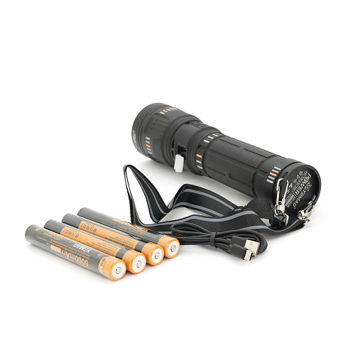 Ліхтар пошуковий YEMAO YM-G600 LED PM60, 4 режими, індикація заряду, живлення від 4(2*18650), IP65, USB кабель, 325х205х100мм, 1,600кг, Black, Чохол+BOX