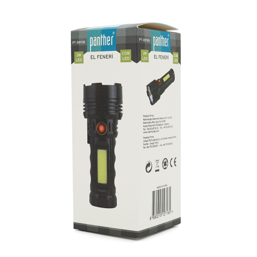 Ліхтарик ручний PANTHER PT-8915B, 1W . CreeXPE+COB. 1+1 режим, вбудований акум-ор 18650, корпус пластик, IP40, 125х48х32, Blister