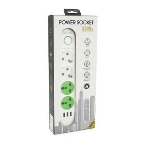 Мережевий фільтр F01U, 2 розетки EU + 2 розетки Universal + 3 USB, 1.5 м, перетин 3х0, 75мм, 2500W, White, Box