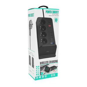 Мережевий фільтр із захистом від перенапруги G12H, 4 Socket + 4 USB 3,2А + 2 Type-C + бездротова зарядка + таймер, 2м, Black, Box