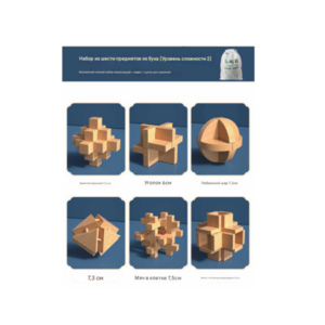 Набір 3D із 6-головоломок "Набір №2" + сумка для зберігання. Метріал: дерево. Розміри елементів 5.7-10 см. 205х135х120 мм. Вага: 0.410 кг.