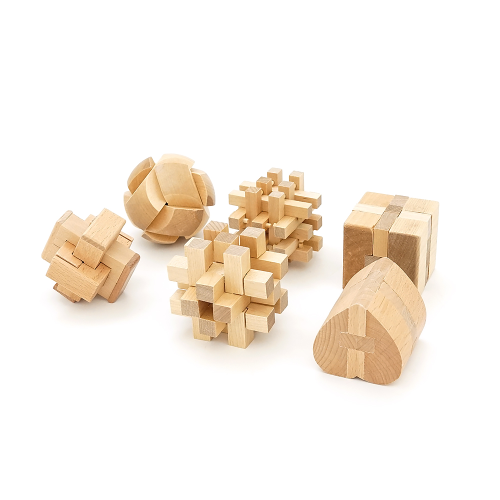 Набір 3D із 6-головоломок "Набір №5" + сумка для зберігання. Метріал: дерево. Розміри елементів 5.7-10 см. 205х135х115 мм. Вага: 0.625 кг.