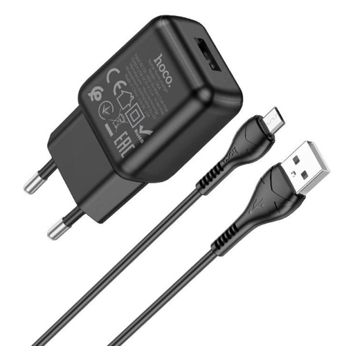 Набір СЗУ 110-240V HOCO C96A+ кабель Micro, 1xUSB, 2.1A, кабель 1м, Black, Blister