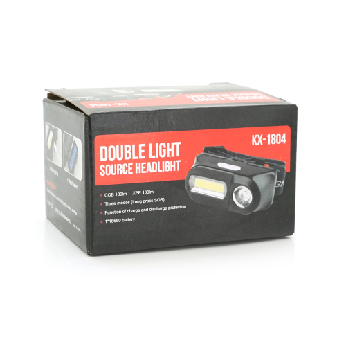 Налобний ліхтарик Voltronic KX-1804,2 Cob, White+Red, 6 режимів, корпус: пластик, водостійкий, ip44, АКБ 18650, Type-C кабель, 6500K, BOX
