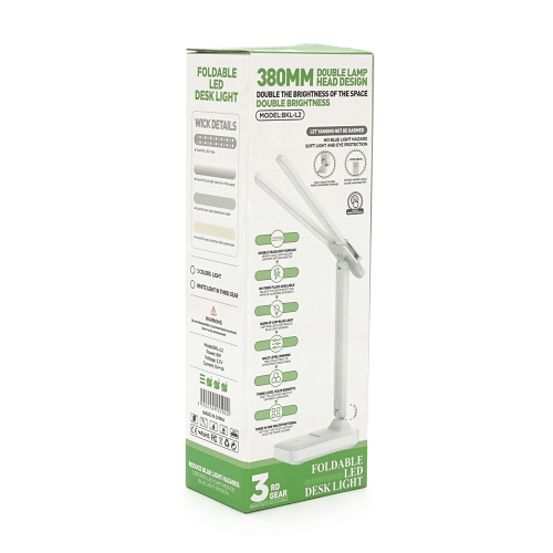 Настільна лампа BKL-L2, 3 режими (білий+теплий білий), сенсорне включення, вбудований акум 500mAh, 3 години роботи, 20см, 250г, White, Box