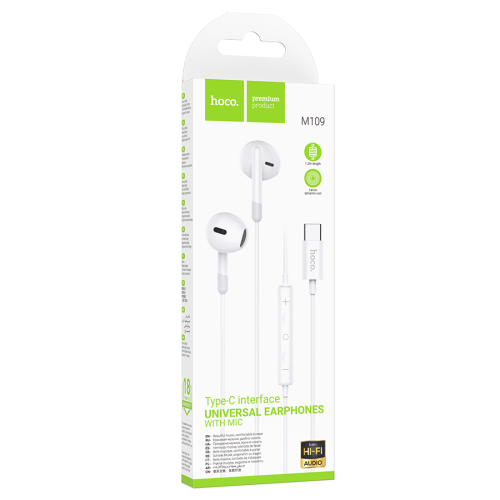 Навушники провідні HOCO M109, роз'єм Type-C, 1.2m, White, Box