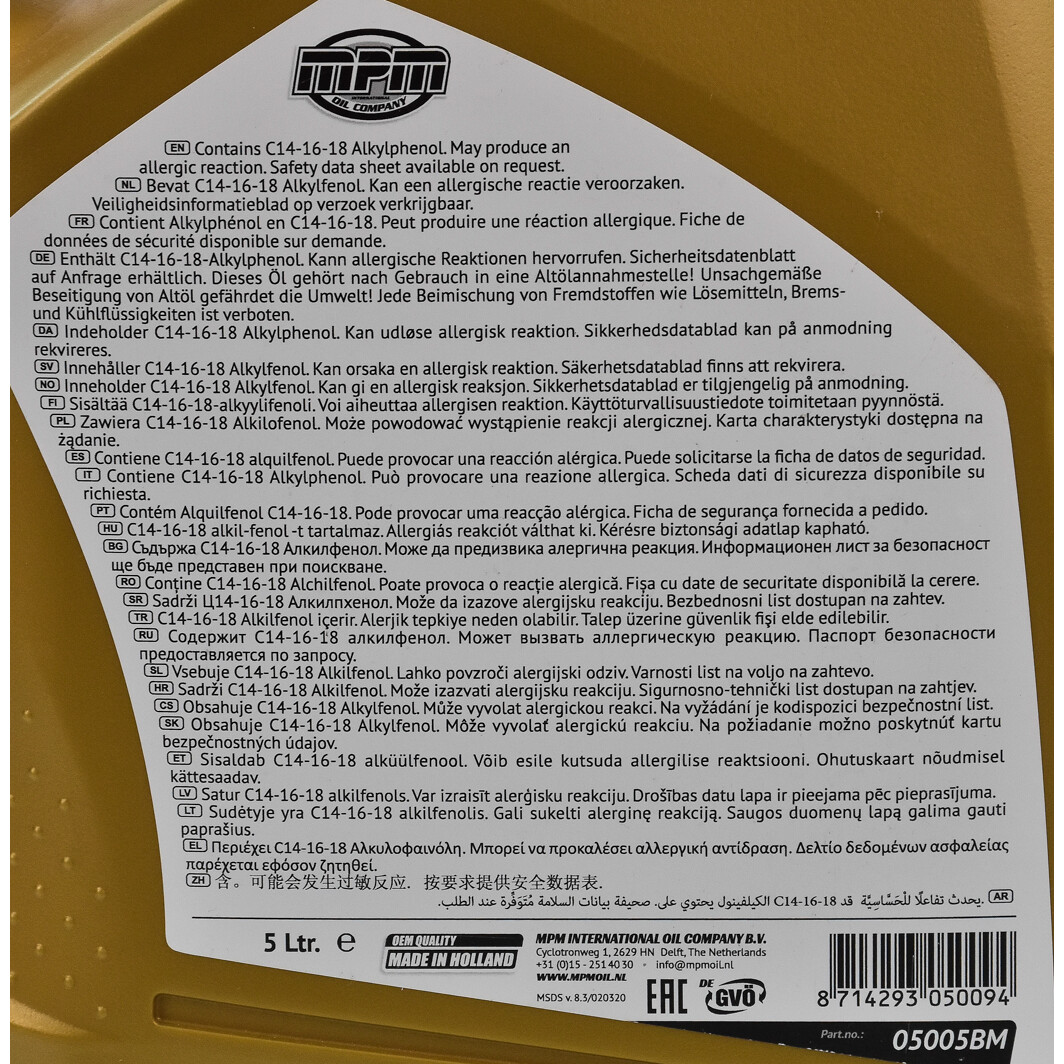 Олива моторна MPM Premium Synthetic BMW / MB 5W-30 5л (05005BM)