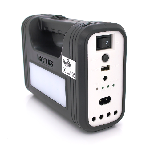 Переносний ліхтар FL-3272+ Solar, 1+1 режим, вбудований акум 4500 мАг, 3 лампочки 3W, USB вихід, Black, Box