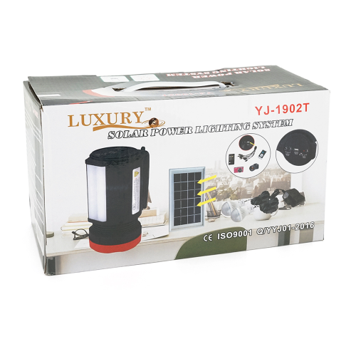 Переносний ліхтар LX-1902+Solar, 3 режими, сонячна панель, вбудований акум 5500mAh, 2 лампочки 3W, СЗУ, Black, Box