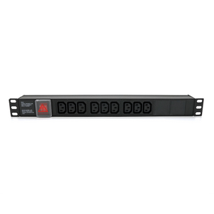 Подовжувач на 9 розеток С13 з вимикачем, 220В, тип, 1U 19", металевий корпус, без кабелю