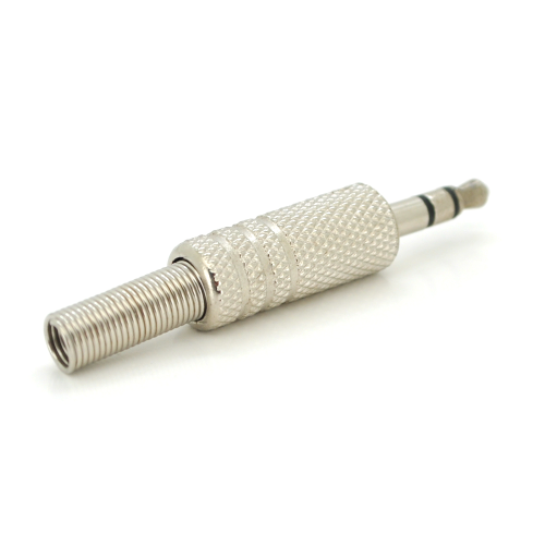 Роз'єм 3,5 стерео під кабель рифлений з пружиною (сірий метал)