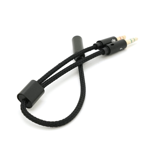 Розгалужувач аудіо для навушників і мікрофона, Jack 3.5 (мама) 4 pin =>2*Jack 3.5(тато) 3 pin, круглий в обплетенні, Box