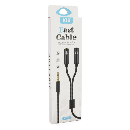 Розгалужувач аудіо для навушників і мікрофона, Jack 3.5 (тато) 4 pin =>2*Jack 3.5(мама) 3 pin, круглий в обплетенні, Box
