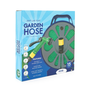 Шланг поливальний на котушці 15м + розпилювач, насадка на кран, Green, Box