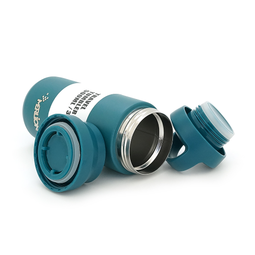 Спортивна термопляшка Merlion, об'єм 500 мл., подвійна кришка з ручкою, колба з нержавіючої сталі, синя