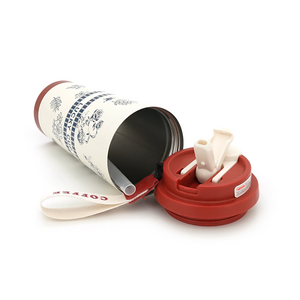 Термокухоль пластиковий Merlion Coffee, з трубочкою, об'єм 500мл., колба з нержавіючої сталі, білий з червоним і сірим