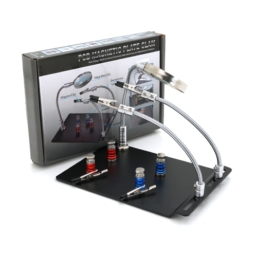 Тримач для паяння та ремонту "третя рука" TE-804. Лінза Ø60мм, 3Х. 2 фіксатори. Розміри 145x210 мм. Вага: 0,810 кг.