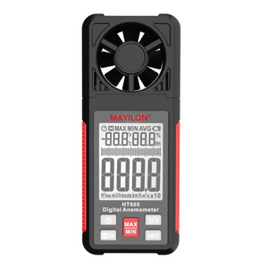 Цифровий анемометр Mayilon HT-605. Вимірювання: швидкість повітря (0.70-30.00 м / с, км / год, вузли, фут / хв, миль / год), С° / F° (-20.0°C-60.0°C), RH (0.0-99.9%).