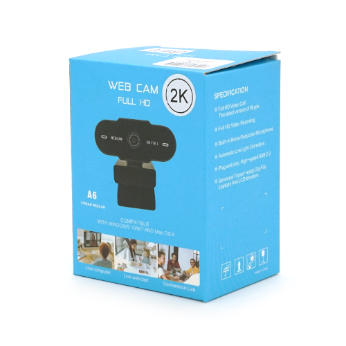 Вебкамера з гарнітурою A6, 1920 р, автофокус, пласт. корпус, Black, Q100