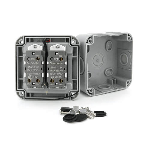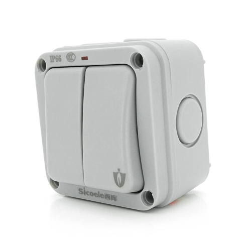 Вимикач подвійний зовнішнього монтажу SL-2, водонепроникний, IP66, AC: 110-250V, 10A, White