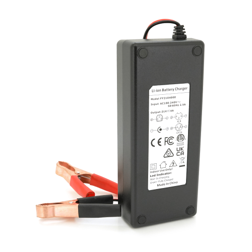 Зарядний пристрій для акумуляторів Li-ion 21V,5S,4A, індикація,з крокодилами 172x72x40mm